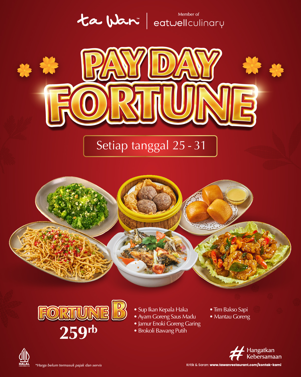 *Fortune A Rp 229.000, Fortune B Rp 295.000 berlaku untuk outlet Ta Wan reguler Papua,