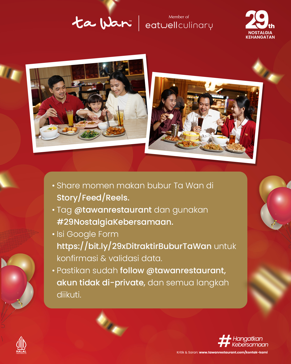 2.Tag@tawanrestaurant dan gunakan #29NostalgiaKebersamaan.